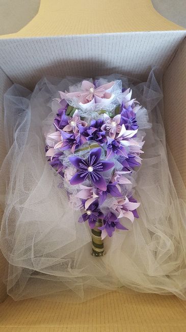 Bonjour à tous C'est avec joie et fierté que je vous montre mon bouquet de mariée, fait main avec ma maman, mon cheri et moi ^^ Il est prêt à partir dans sa petite boiboite! Un bon dimanche à tous!