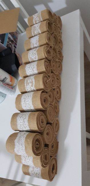 voila ça avance cadeaux invitées filles des bougies faites mains et jeu des binomes fait aussi numeros de tables en bouchons ok plan de table ok plus qu a le faire en déco lanternes achetées livrets enfants ok textes messe ok traiteur, salle, dj,...