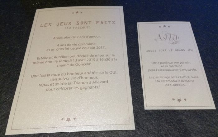 Salut la commu, Aujourd'hui j'ai envie de partager avec vous notre faire-part pour le grand jour prévu le 13 avril 2019. On avait trouvé l'idée sur internet mais ça nous revenait beaucoup trop cher alors ma témoin (qui est Web designer) nous les a...