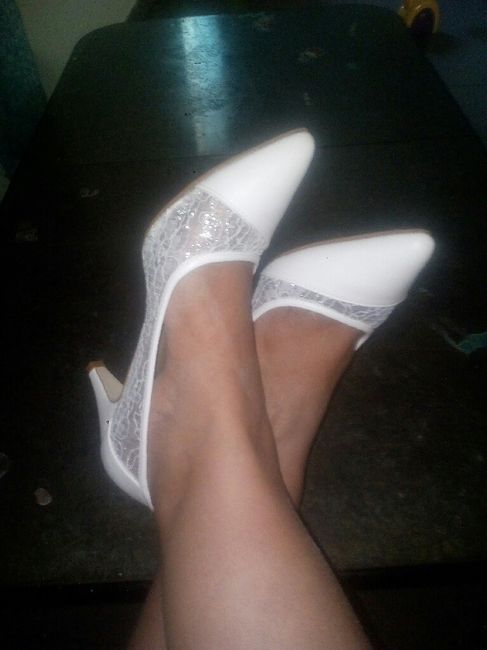 Coucou. Voici mes chaussures, les blanches fermées, je pense les mettre jusqu'apres le Vin d'honneur et la paire argentée ouverte à partir du repas, je les trouve plus commodes. Vous en pensez quoi ? Moi je les kiffe 😍