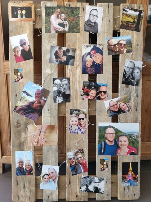 Salut la commu ! Grosse énigme pour moi... J'ai commencé le support ou on va afficher des photos de mon chéri et moi... Alors voici la base... Notre thème c'est champêtre hivernal ! Euh je sais quoi ajouté ! J'hésite entre écrire au feutre la légende...