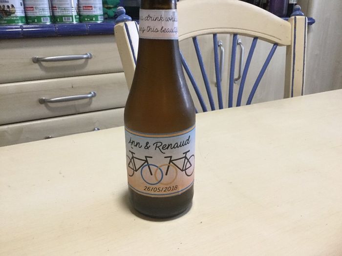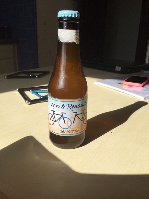 Coucou les filles! Nous allons offrir des bouteilles de bière comme cadeau aux invités. Mais nous voulions ajouter une phrase en haut de la bouteille ( là où l’etiquette à été enlever mais je n’ai pas d’inspiration. En anglais on marquera « cheers to...