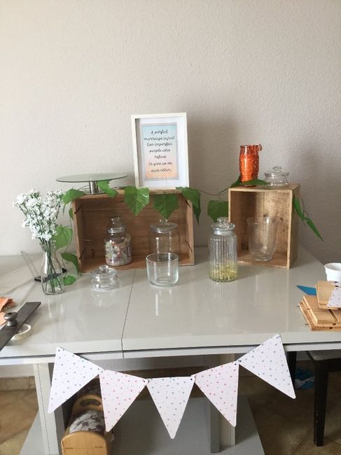 Candy bar #1 Coucou les filles. Je teste la mise en place de mon candy bar. Qu’est ce que vous en pensez? Je mettrai plus de lierre, l’affiche sera bleu avec le texte I love you like a fat kid loves candy, j’attends plus de recipient ( ils arrivent...