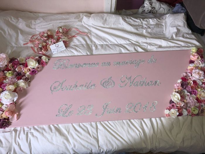Hello, la confection de mon panneau de bienvenue est fini et je l’ai reçu aujourd’hui. Étant au travail je dois attendre ce soir pour le voir en vrai. Mais je me languissais de vous le montrer du coup le voilà 😊 la personne qui m’a fait mon panneau...