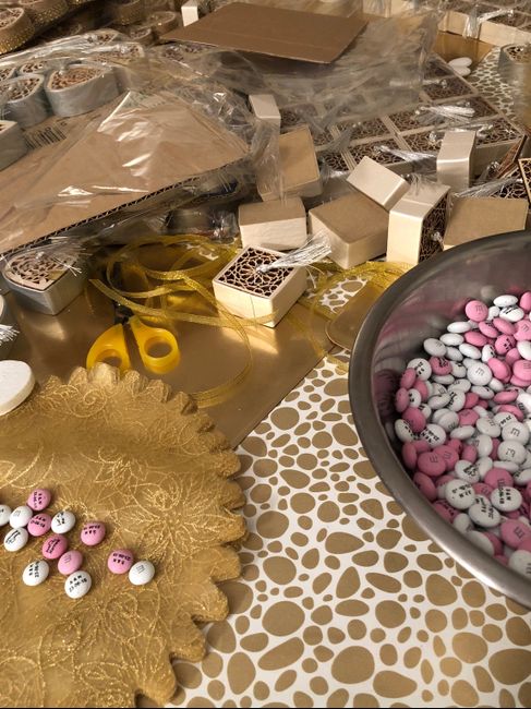 J’ai le dos en compote... oui oui je suis bien en train de remplir mes contenant dragées.. enfin plutôt contenant m&m’s... je vous partage mon désespoir lol