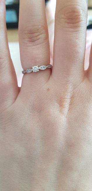 Bonjour à toutes ! J aimerais beaucoup voir vos jolies bagues. Voici la mienne, Mr l'a choisit seul et je suis plus que satisfaite !