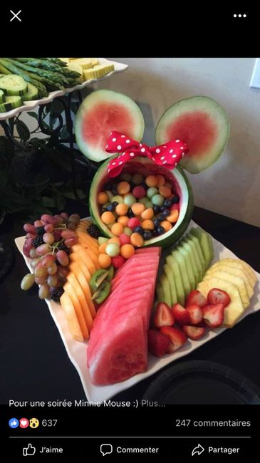 Coucou tout le monde je partage ma trouvaille sur faecbook moi ce n’est pas mon thème mes comme je lis l’es discussion je c’est que beaucoup d’entre vous aime bien alor voilà une idée pour une décoration de fruit voici la photo 😉