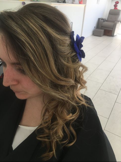 Voilà voici mon essaie coiffure comme je voulais bon le jour J ce sera un plus travaillée et un peu plus gonflée au niveau du dessus avec une vrais rose bleu 😊