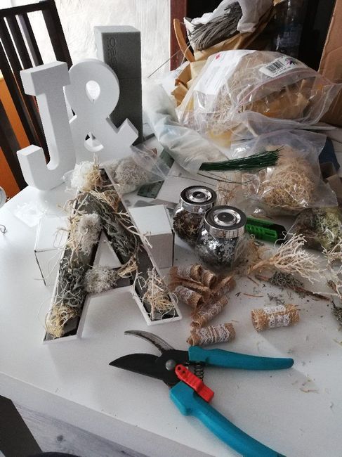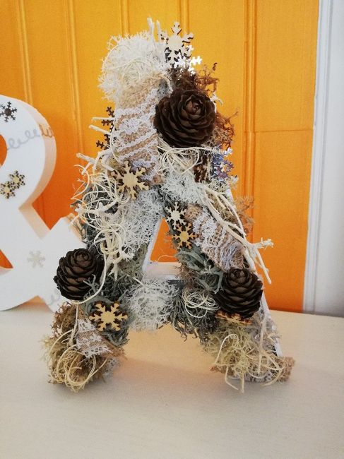 C'est bon j'ai passé la deuxième....!!! Action réaction ! Je m'attaque à mes lettres initiale, je fait un mélange de lichens, bois sec, pomme de pin, et je rajouterai au dernier moment de la mousse boule bien verte ! La suite quand elles seront fini...