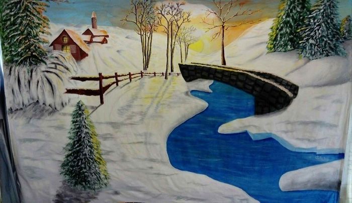 Il y a quelques temps, nous étions à la recherche d'un fond pour nos photos de groupe. Mon cher et tendre me propose de demander à sa prof de dessin... OK, elle nous demande un vieux draps en coton, vous savez ces vieux draps que l'on trouve chez nos...