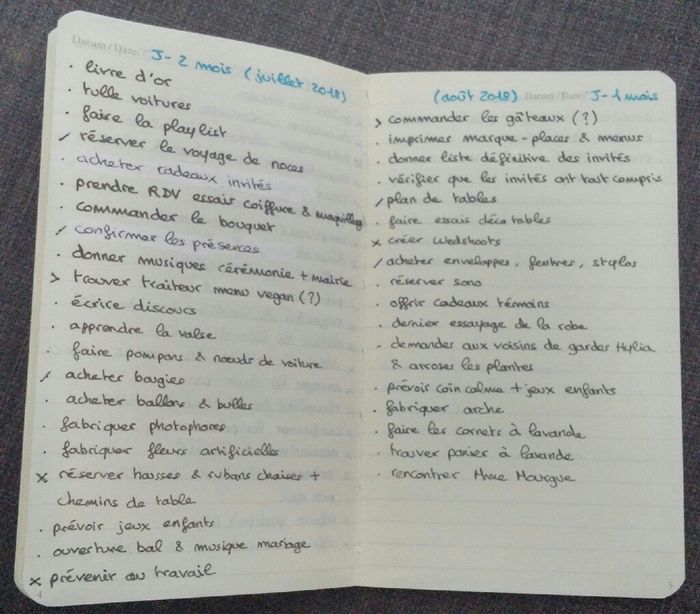 Coucou la commu ! Premier coup de stress de mon côté en regardant le compteur (plus que 50 jours) et surtout la liste de choses à faire... (Il faut y ajouter ce qu'on n'a pas encore fait du mois de mai : la bière et tireuse à bière, la chorégraphie...