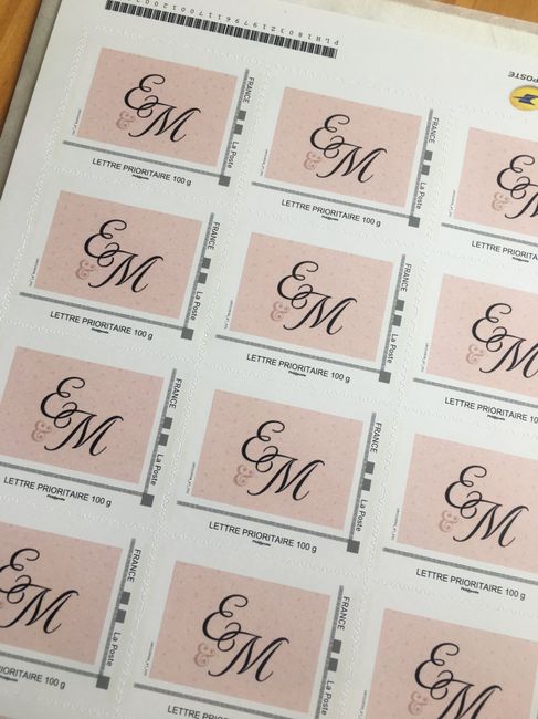 Trop heureuse de mes faire parts et de mes timbres 😍😍 Il ne me manque que mon tampon j’ai hâte de le recevoir !!
