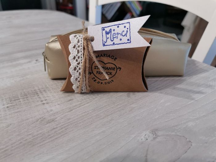 Je partage avec vous notre idée de cadeau invités. Ce sera un porte clés avec au verso les initiales de chacun et au recto nos initiales et la date de notre mariage et la boîte qui le contiendra.