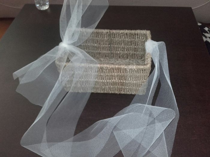 Coucou, pour faire en suivant de mon post avec les tickets , c'est bien beau tout ca mais il faut un contenant ...alors j ai pris une de mes petite panière mais comment la customiser ....je seche un peu .....j ai mis du tule pour pouvoir la faire...