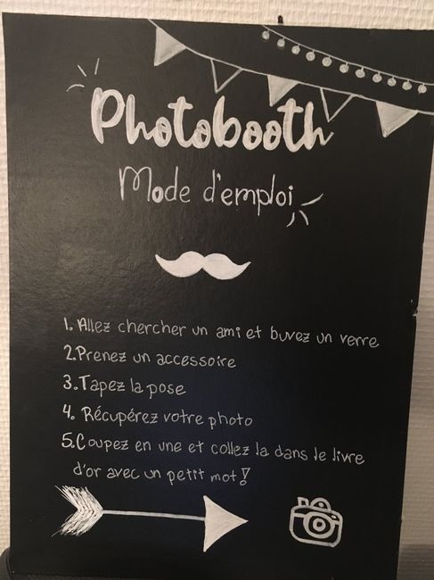 Bonjour Avez vous une affiche photobooth ?! Pour expliquer au gens Ou la mettez vous ? Fixer, poser,?? Vous avez photo ? Je trouve pas du tout mon bonheur sur le net. J'ai beau chercher.. Rien. Mercii