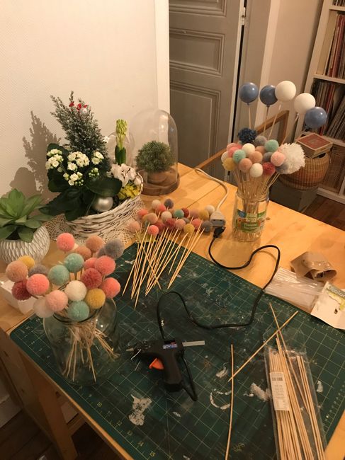 J’ai commencé à faire les pics de pompons pour mettre dans l’allée de la cérémonie laïque. Bon il me faudra encore des pompons car j’en ai pas assez mais qu’est ce que vous en pensez?? Je commence par ci par là à faire les réalisations des DIY car le...