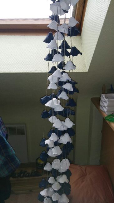 Hello Guirlandes finies. Je suis contente du rendu après avoir découpé et peints toutes ces boites d'oeufs😉👍