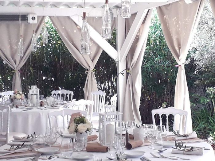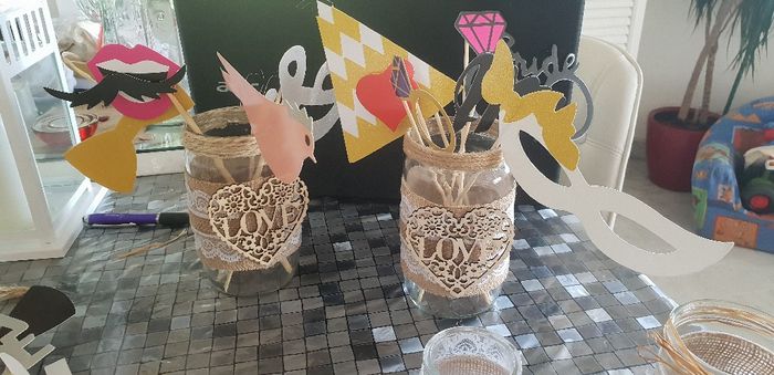 Voici ma déco pour l'arbre ou il y aura le photobooth je vais mettre 2 ou trois rondins avec des petites bouteilles suspendues ou je mettrai des billes d'eaux et des branches d'olivier ça y est ça avance car suis un peut en panique avec tout ce...