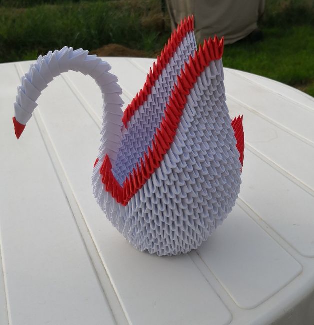 Pour l'un de mes premiers posts je souhaite vous présenter mon 1er diy dans mes couleurs choisies rouge et blanc , un cygne origami pour la table d'honneur. Le pliage pour le 2ème est fini, reste plus qu'à le monter. Je me tâte à faire des couples...