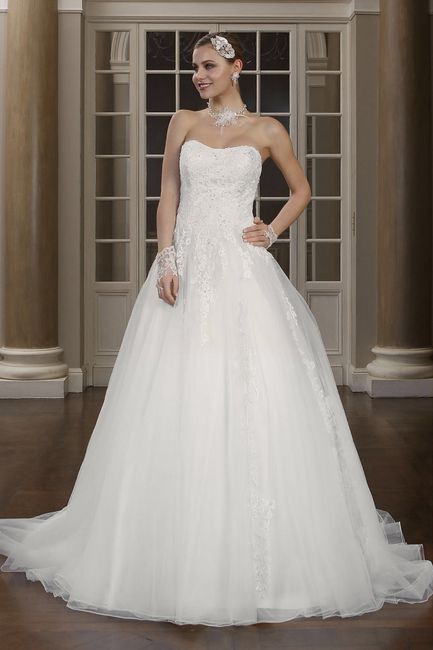 Bonjour à toutes. 1er essayages sur Paris alors que je me marie sur Annecy. Donc stress pour trouver ma robe rapidement. Chose faite à la seconde boutique. Je vous montre pas sur moi car pas à ma taille donc ça rend pas en photo mais voici le modèle....