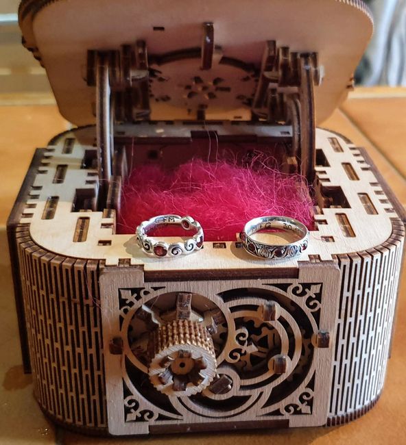 Bonjour a toutes et tous Nous avons enfin récupéré nos alliances, nous avons la boite parfaite pour.Mais petit souci je n'arrive pas a les faire tenir en place pour les présenter.Des idée ? Nos précieux
