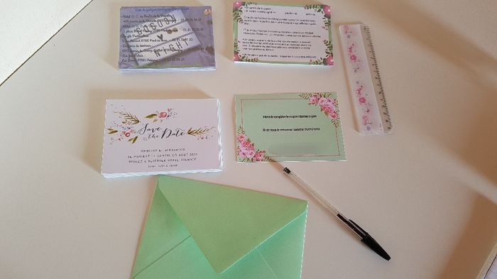 Hello la commu ! Voilà ça y est, mes save the date sont prêts à être envoyés. Après avoir imprimé les différents éléments a envoyer (save the date recto verso, coupon réponse et liste hébergements possible a proximité (sur les conseils de cheri)....