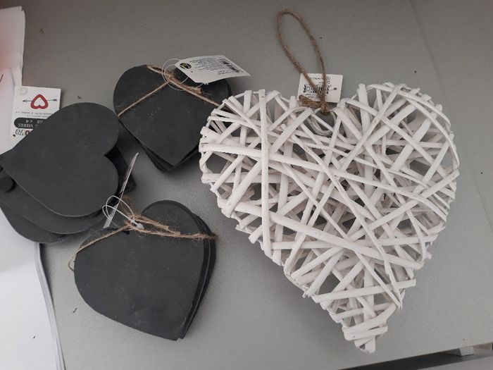 Bonjour Voilà nous avons choisi nos faires part. Qu'en pensez vous les filles? Et voici le coeur sur lequel nous mettrons nos alliances, à l'aide d'un ruban. Les petits coeurs eux serviront de marque place avec une écriture à la craie. Vos avis? ...