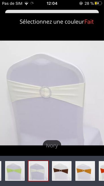 Coucou tout le monde j’ai une question à vous poser. Je me marie en septembre sur le thème chocolat/ivoire rustique/élégant. Dans la salle nous avons des chaises en bois couleur chocolat Du coup j’ai choisi de ne pas mettre de housse de chaise. Mais...