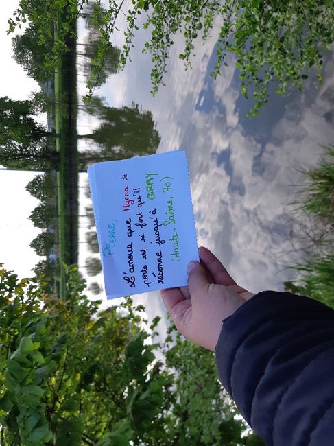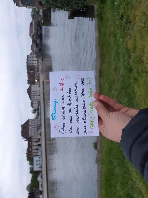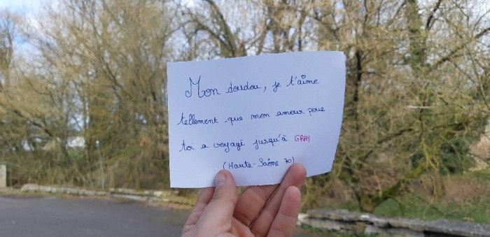Coucou J'ai découvert le principe des love note et je trouve ça sympa. N'hésitez pas à m'envoyer vos love note et je vous enverrai la mienne Maubeuge 59 Notre texte "Amélie et Loïc votre amour est si fort qu'il vous fera voyager jusqu'à (ville et...