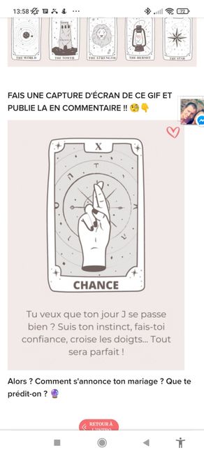 Coucou tout le monde 💜 Merci d'avoir participé jusqu'au bout ! Maintenant qu'on en sait un peu plus sur ton mariage, on va pouvoir tirer les cartes... FAIS UNE CAPTURE D'ÉCRAN DE CE GIF ET PUBLIE LA EN COMMENTAIRE !! 🧐👇 Alors ? Comment s'annonce ton...