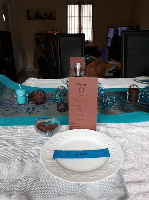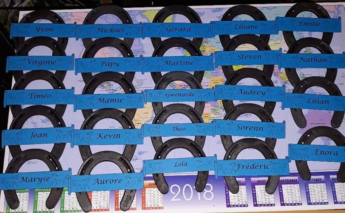 Coucou tout le monde, Voici la décorationde la table. Ça sera une grande table de 24 personnes, car je veux éloigner une personne de moi. À la place des assiesttes ça sera des fer à cheval.