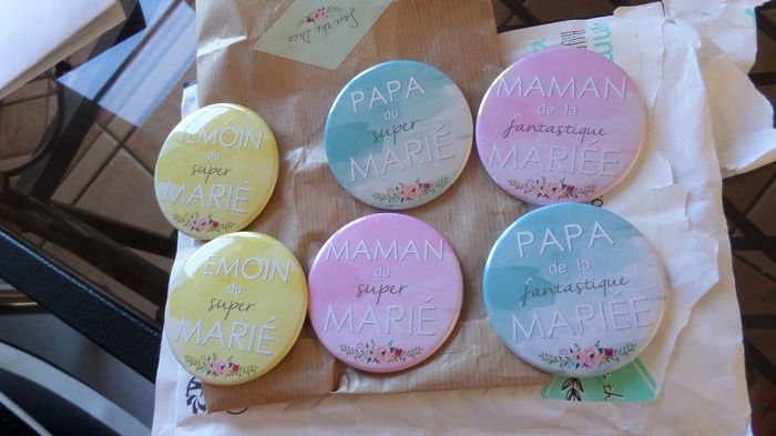 Aujourd'hui j'ai reçu les badges pour nos proches (parents et témoins) en provenance de save the déco . Je suis ravie ils sont sublimes j'adore donc je partage avec vous ma joie badge