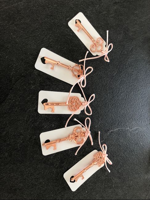 Je partage avec vous nos porte nom . Clés décapsuleur Rose Gold une petit ficel en jute et une étiquette Kraft viendras accompagner là clés avec le prénom