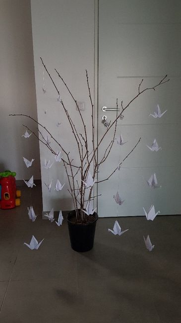 Coucou les filles voilà j'ai enfin testé mon arbre par fini niveau déco ni origami des grues mais je vais continuer avec d'autre arbre bien sur pour créer une séparation dans ma salle entre l'espace table et le buffet