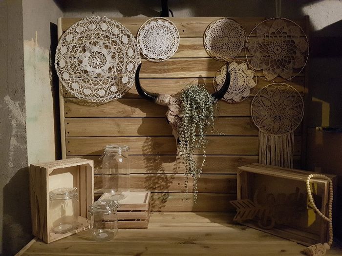 Coucou les brides Hier une de mes temoins est venus m aider a faire mon candy bar 😋 Je vous montre un petit apercu il est pas encore finit biensur mais deja je suis fan.Dites moi les filles pour 120 invités vous prévoyez combien de kilos de bonbon??...