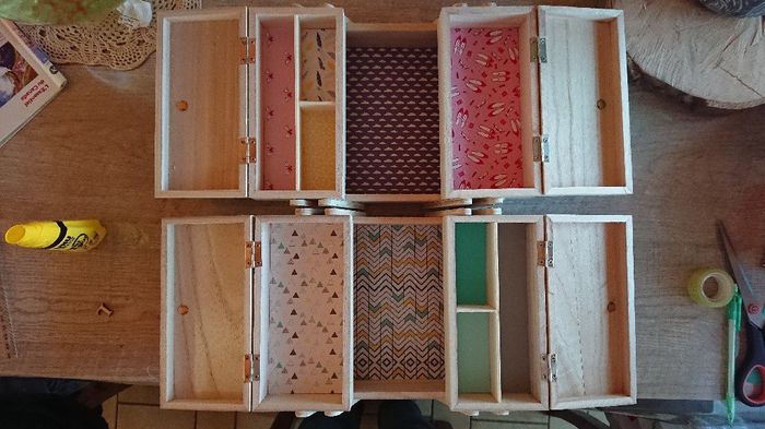 He'lo la communauté !!! Voici mes créations du week end !! Pour la malle je n'ai pas pris de photo Finie.. La c'est juste quand j'ai posé les lettres Reste plus qu'à remplir les box des témoins et leurs donner J'ai tout trouvé à Action : la...