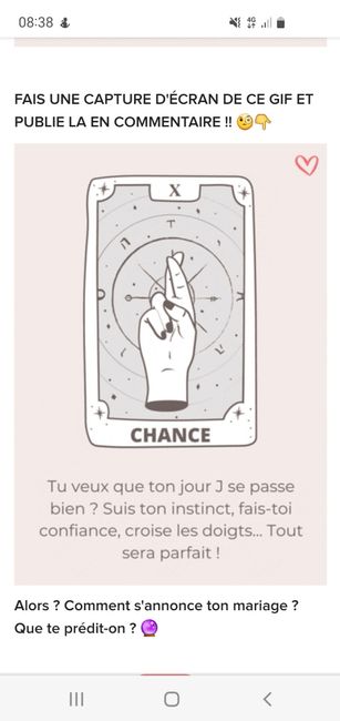 Coucou tout le monde 💜 Merci d'avoir participé jusqu'au bout ! Maintenant qu'on en sait un peu plus sur ton mariage, on va pouvoir tirer les cartes... FAIS UNE CAPTURE D'ÉCRAN DE CE GIF ET PUBLIE LA EN COMMENTAIRE !! 🧐👇 Alors ? Comment s'annonce ton...