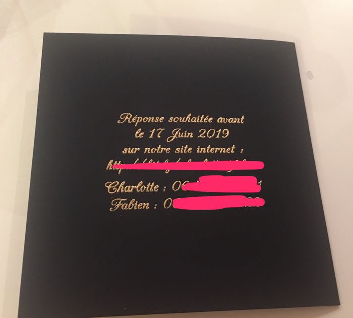 Bonjour, je vous partage notre faire part. J e teouve ça toujours bien de partager si ca permet de donner des idées. 😉 Nous avons mis bcp de temps à le faire- l écriture (prénoms + le derrière + le logo) c est la technique de l embossage, le texte a...