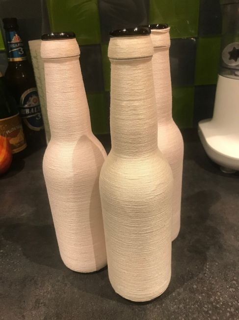 Salut tout le monde, nouvelle création de mon côté pour la déco sur les tables. Je récupère des bouteilles de bières et les habilles pour les utiliser comme vase. Qu'en pensez-vous?