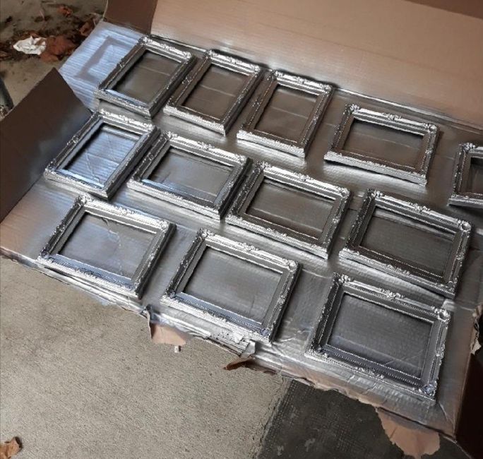 Coucou la commu , Il y a un mois j'avais acheté des cadres noir chez actions pour les tables . Ce matin , activité bombage couleur argent . J'aime bien le résultat 😍 et vs?