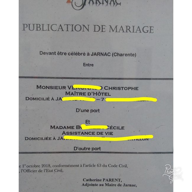 Bonjour à toutes et tous. A 15 jours du mariage ils sont affichés. Ça fait bizarre 😁