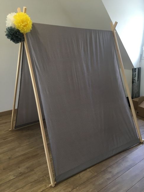 Bonjour, Bonjour! Alors je partage ici mon petit DIY de ce samedi. Une jolie tente où les enfants pourront se cacher du soleil (espérons qu'il y en ait..) lors du vin d'honneur pour y faire des petits coloriages ou même quelques bêtises^^. Une tente...