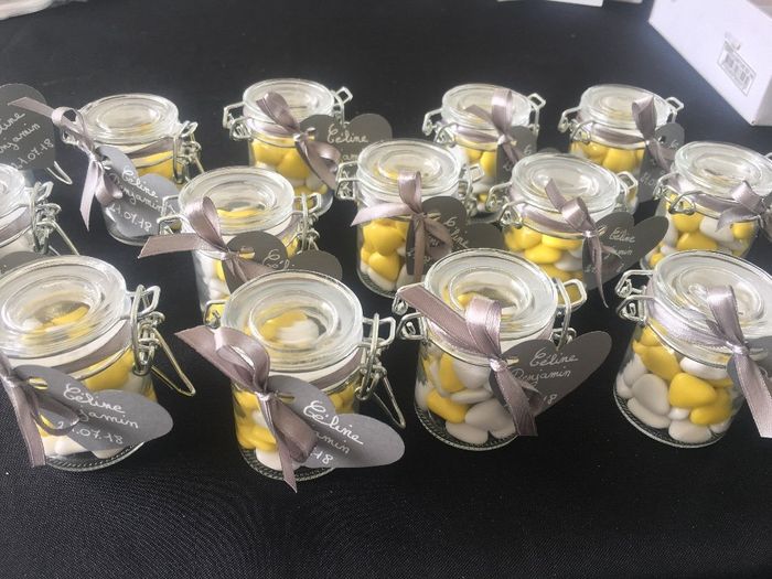 Hello les filles! Aujourd'hui j'ai confectionné mes petits bocaux de dragées à donner aux invités. Je suis contente du rendu final! Et vous qu'en pensez-vous?? Dragées