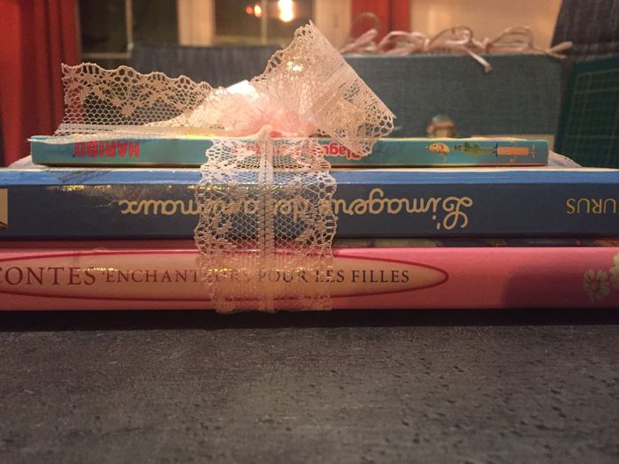 Bonsoir !! voici un modèle de centre de table sur lequel on posera certaine une composition florale dans un pot de conserve sans oublier les enfant fermé par noeud comme ça ils pourront lire les livres notre thème les livres 📚 !! bisous bisous ...