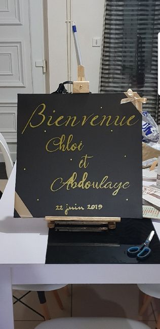 Coucou les Brides Comment allez-vous ? Aujourd'hui j'ai finalisé notre panneau de Bienvenue que l'on disposera à l'entrée de la salle sur un mange debout. Notre thème est Chic et Doré Je suis assez fière du résultat !! 😍 Qu'en pensez-vous ?