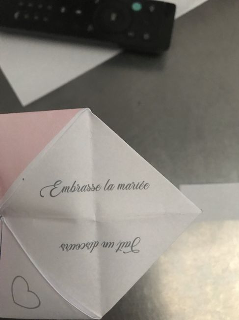 Bonsoir je vous présente mon nouveau diy.. j’ai créé une petite cocotte en papier avec mes couleurs et mon thème.. elle sera disposée sur chaque table .. le but c’est que les invités jouent le jeux .. pleins de petits gages !!