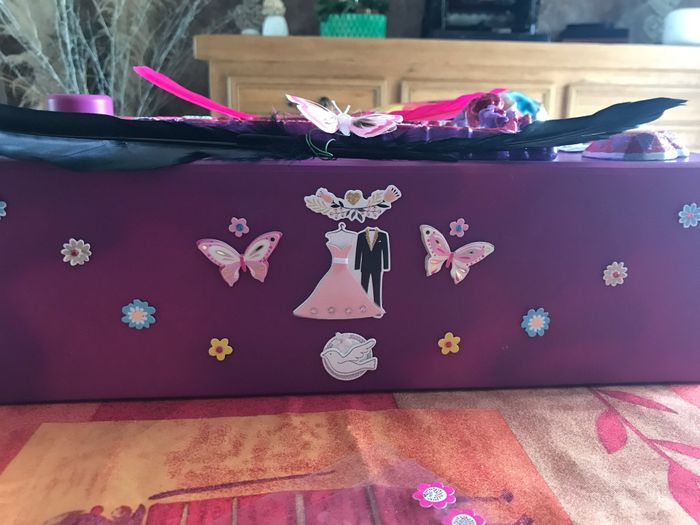 Bonjour à toutes j ai décidé de créer mon urne moi même j ai tt acheté j ai hâte de commencer ce soir je vous enverrai des photos theme papillon plume et glamour voilà