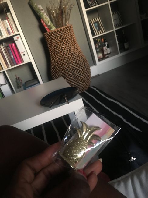 Voilà nous allons avoir des ananas sur les tables comme marque places en accord avec notre thème tropical.