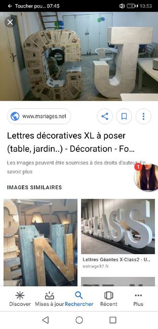 Hello! Le compteur tourne et les idées fusent comme au premier jour ! Aujourd'hui en cherchant la déco extérieure de la salle, j'ai eu l'idée de confectionner des lettres donc "F & J" en carton/papier que je vais peindre, recouvrir, mettre des...