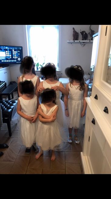 Bonjour à toutes ! dimanche, essai et retouches des robes pour mes cousines qui seront les petites filles d’honneur (il y aura mes sœurs aussi, mes elles sont plus grandes)! je les trouvais tellement chou !! il manque les chaussures bien sur, et...